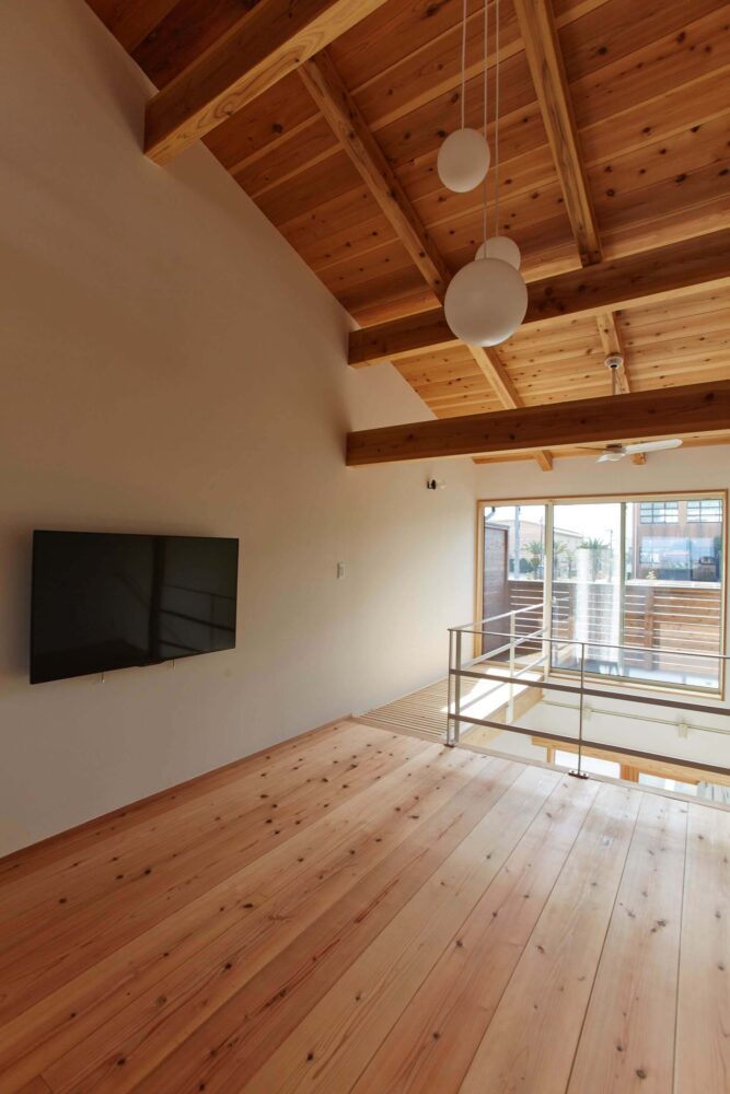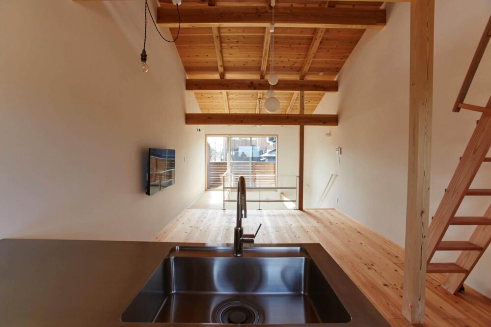 2階のリビングダイニングは、南の大開口に面して明るく開放感たっぷりです。